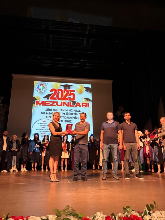 2024-2025 Eğitim-Öğretim Yılı mezuniyet törenimiz, 19 Haziran 2025 tarihinde Mehmet Akif Ersoy Kültür Merkezinde coşkulu bir şekilde gerçekleştirildi. Okul Müdürümüz Handan Arslan’ın açılış konuşmasıyla başlayan törende, öğretmenlerimizin ve velilerimizin katılımıyla duygusal anlar yaşandı.